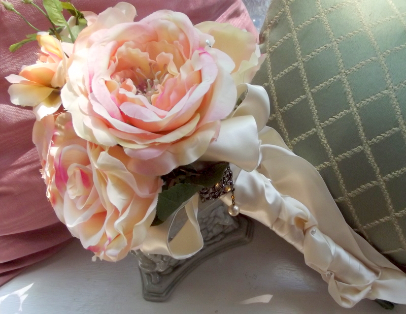 Victorian, Shabby Chic Bridal Bouquet Of Cabbage Roses In Pink, Blush